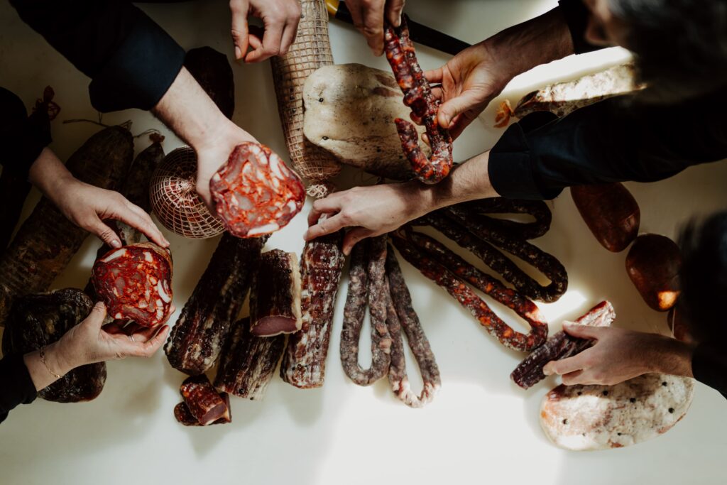 Vi sono diverse varianti di questo insaccato tipico d’Abruzzo, ma la nostra è quella dell’alto vastese. Oggi, vi sono solo pochissimi produttori capaci di realizzarla fedele all’originale e con l’antica tecnica manuale “a punta di coltello”.